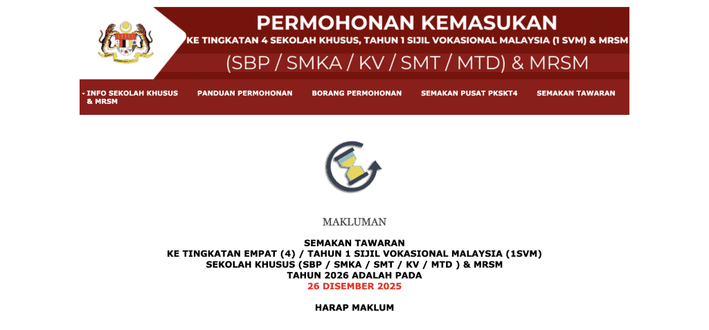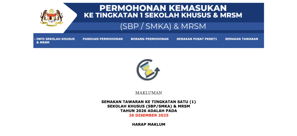 Berikut adalah link rasmi untuk semakan tawaran SBP/SMKA 2026: